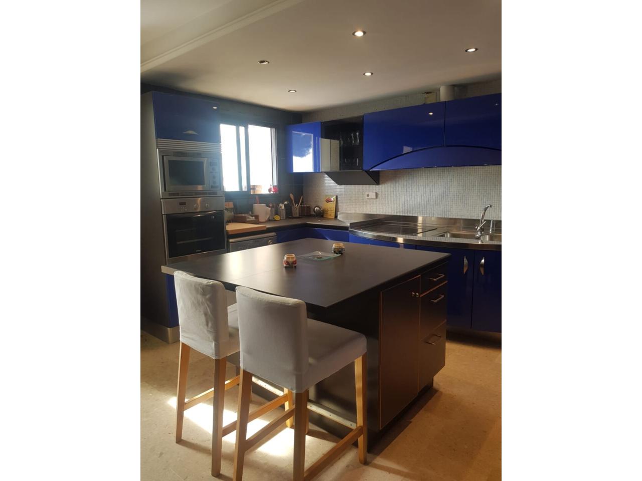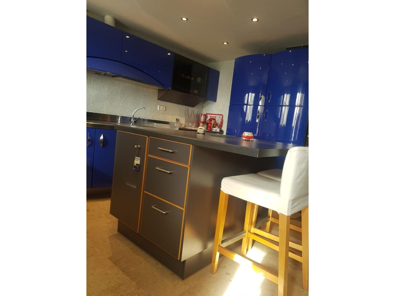 Entramos en la cocina, con unas grandes dimensiones lo que facilita el amueblamiento de grandes armarios, con isla en medio y todo con diseño de Flavio Manzoni. (diseñador del grupo Ferrari.