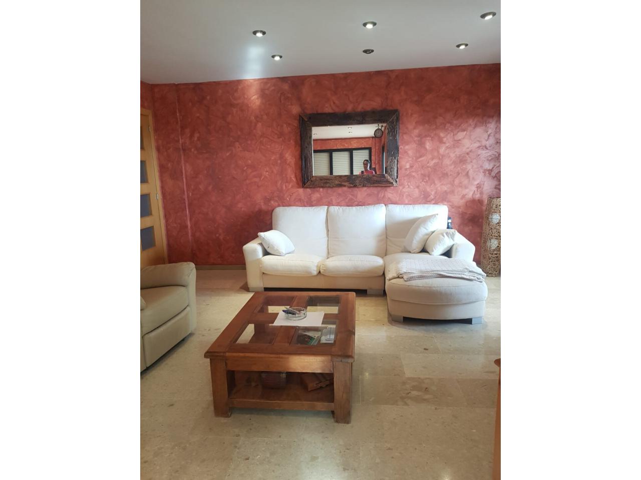 Entramos por el Hall o recibidor y a la izquierda pasamos a un gran salón con dos salidas (a derecha e izquierda del mismo) a una terraza cerrada de aluminio y doble cristal frente al mar, con el mobiliario para descansar y una mesa con cómodas sillas para comidas, cenas o tertulias gozando de los colores del mediterráneo y sus puestas de Sol.