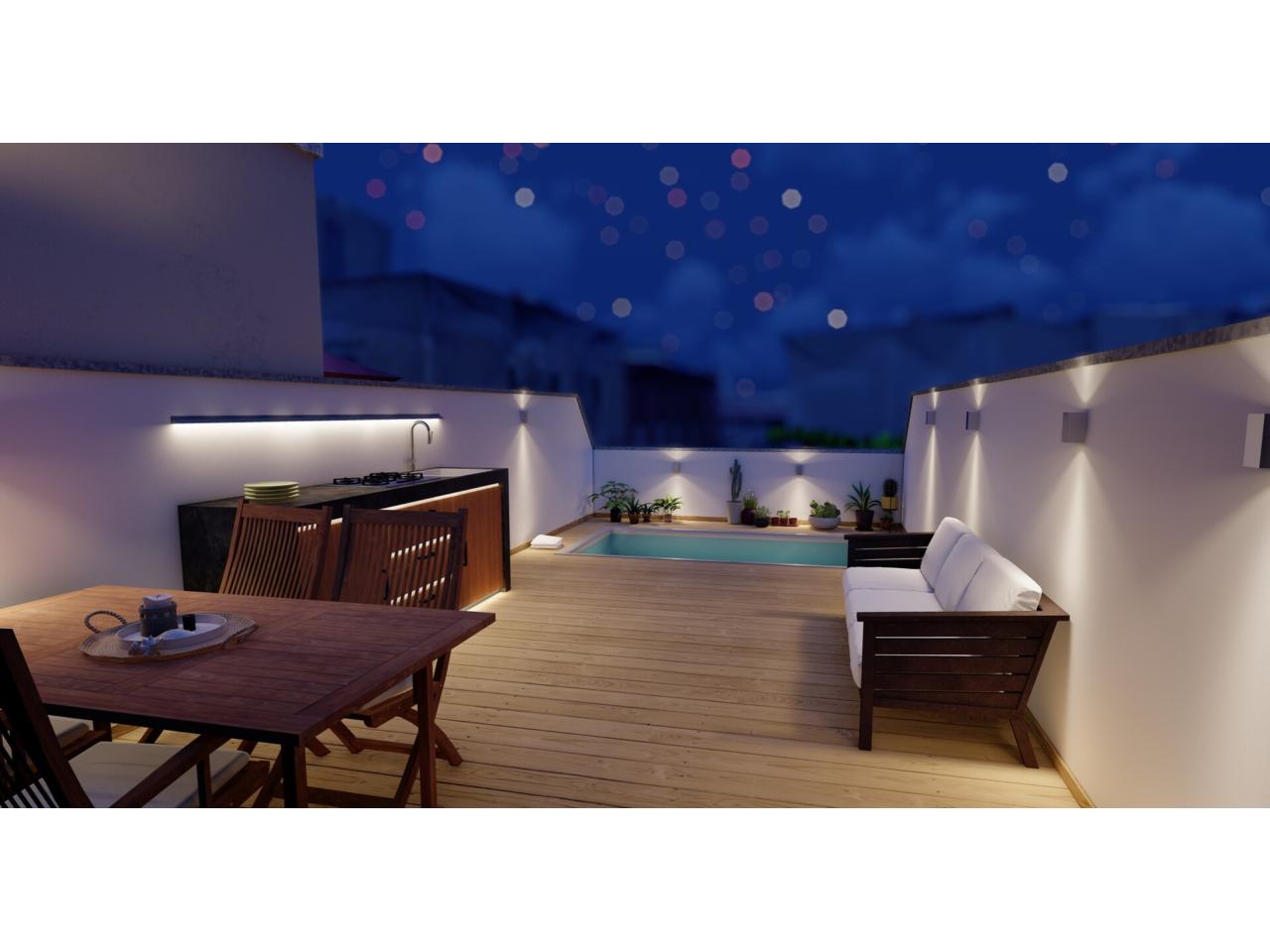Planta primera, y segunda dos habitaciones con vestidor y baño incluido por planta. Última planta, con piscina y gran terraza Solárium, barbacoa, etc