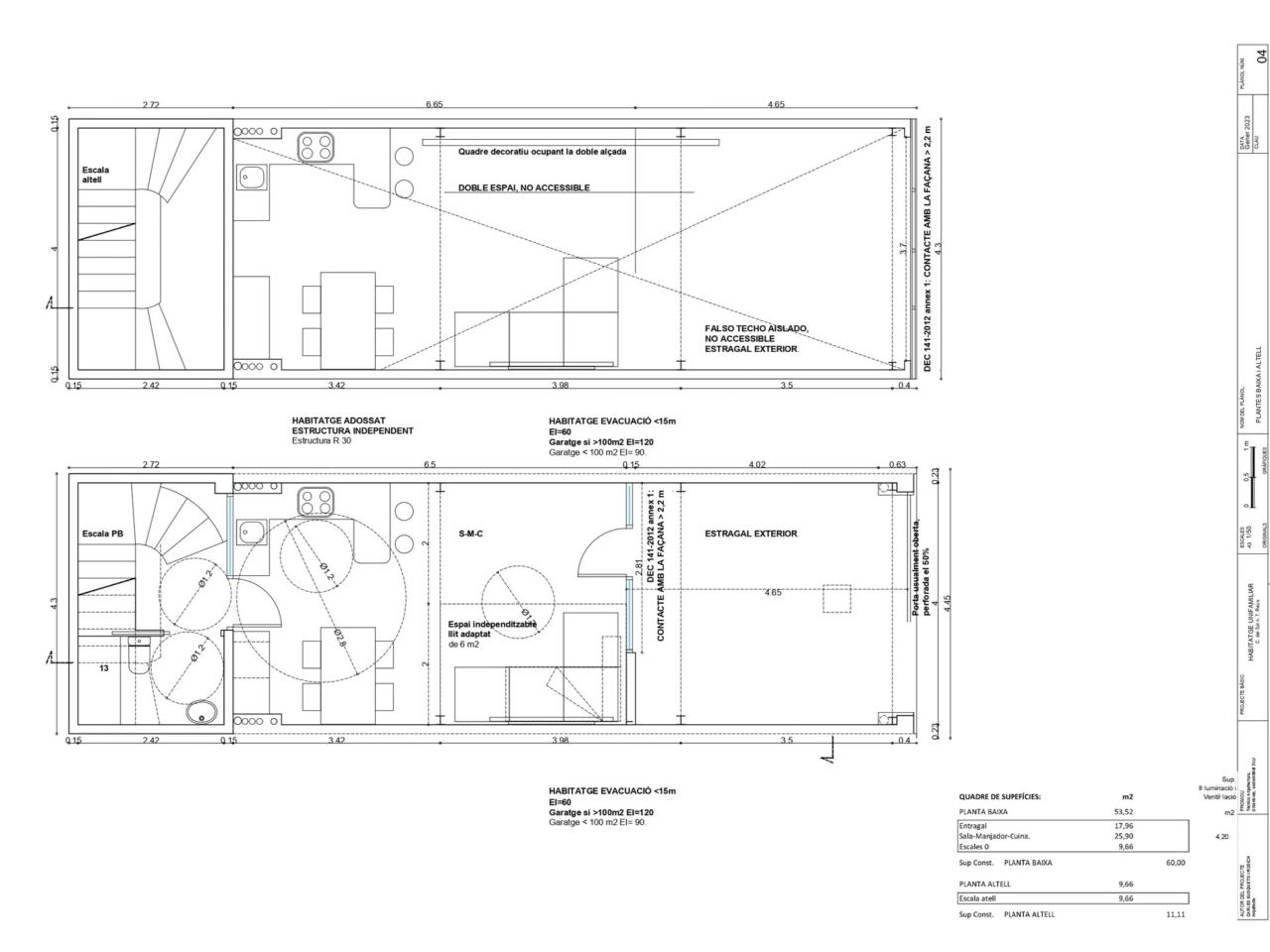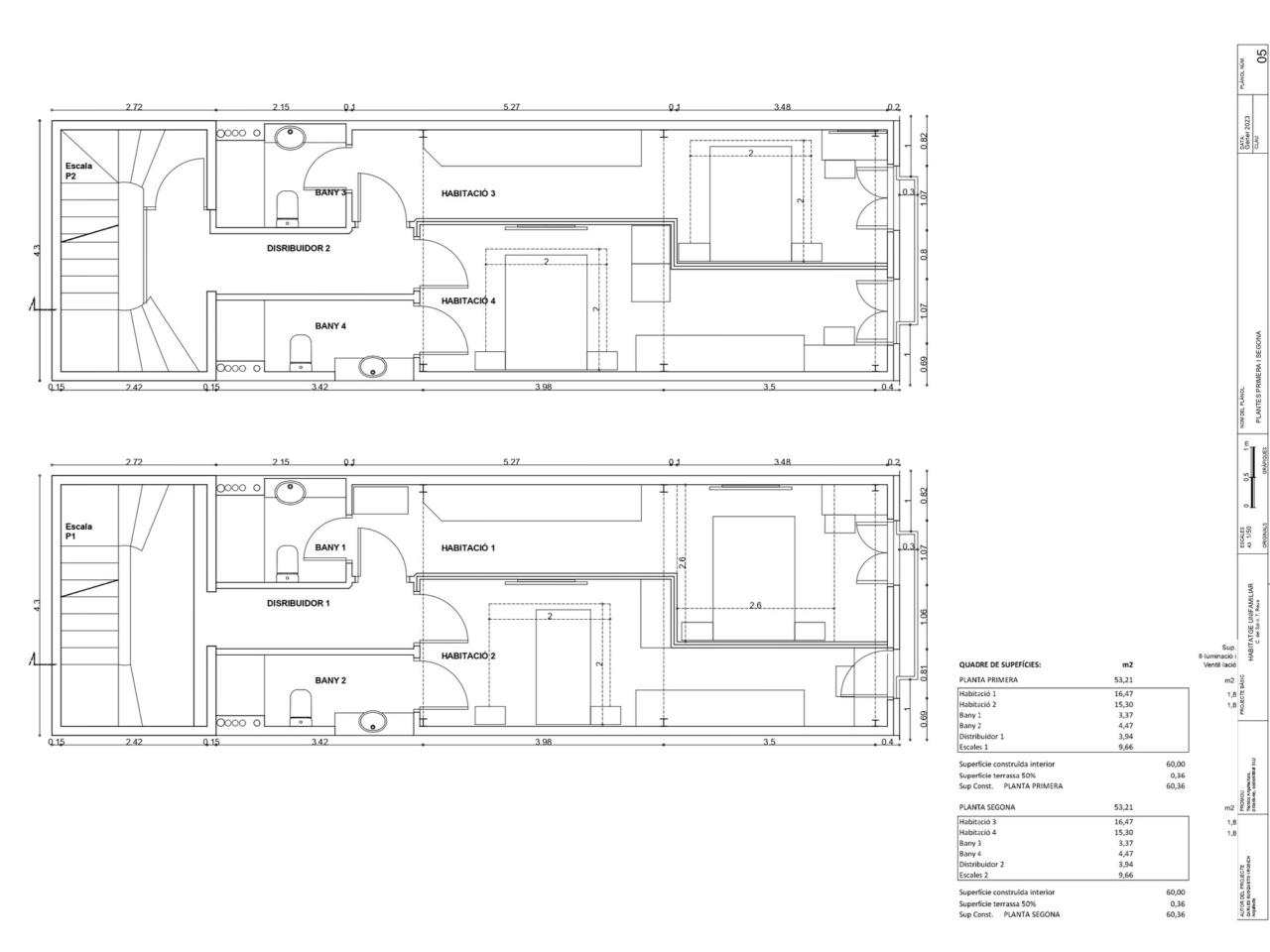 Solar de 60 metros con un proyecto de 4 plantas , construcción total de 203,50 m2 y una superficie útil de 180.27 m2 . Distribuidas de la siguiente manera.
